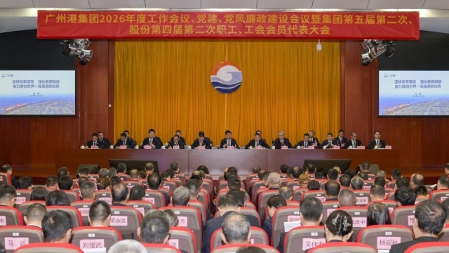 1月29日,广州港集团在港口中心召开2026年度工作会议、党建党风廉政建设会议暨集团公司第五届第二次、股份公司第四届第二次职工、工会会员代表大会,深入学习贯彻党的二十大和二十届历次全会、中央经济工作会议、全国交通运输工作会议精神,落实省委“1310”具体部署和市委“1312”思路举措,全面总结集团公司2025年及“十四五”工作完成情况,研判外部形势,系统谋划2026年及“十五五”期间生产经营重点工作和党建、党风廉政建设工作。