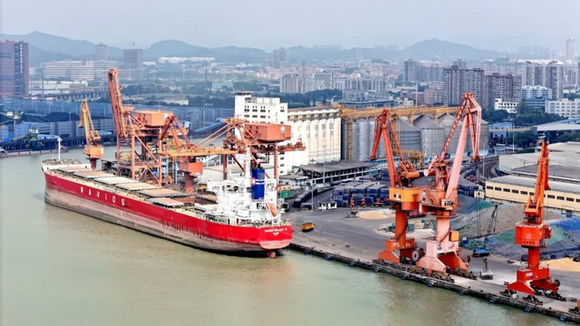 今年以来,新港码头积极适应市场变化,发挥港口枢纽优势,主动服务周边腹地企业,优化货源结构,改进作业工艺,提升服务质量,实现货物吞吐量稳中有升,1-10月完成粮食自然吨同比增长27%。为做好首船“橙纤维颗粒”进口工作,新港码头高度重视,安排专人协调对接,根据货物的特点和装载方式、接卸要求提前谋划接卸工作,在卸船作业、平面运输、堆场存放等方面精心安排,为货物接卸、储存、离港打造专属的作业流程,安全高效完成全船外贸粮食接卸,获得客户的充分肯定。