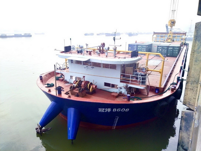 1月9日上午,伴随着响亮的鸣笛声,“冠洋8608”船舶装载着百余箱铁矿抵达云浮国际物流港,广州港穿梭巴士“南沙-云浮国际物流港”支线试航成功。