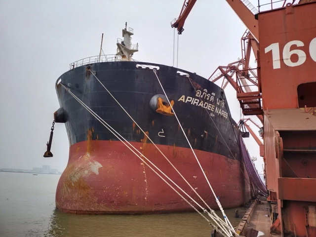 3月13日,载着5.5万吨球矿船“珍宝号”靠泊新港码头开始卸货,这是继“飞马座”球矿完成疏运工作后,新港公司持续强化港口枢纽功能、与广东中南钢铁股份有限公司的又一次合作,是双方共同打造球矿集散基地的重要一步。