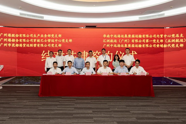 8月15日,广州港股份有限公司生产业务部党支部、广州市花都港货运联营有限公司党支部、广州港船务有限公司穿梭巴士营运中心党支部、华南中远海运集装箱运输有限公司内贸中心党总支、汇洲航运(广州)有限公司第一党支部、广州中远海运集装箱运输有限公司黄埔船代党支部开展党建结对共建活动并共同签署“结对共建活动”协议书。广州港股份副总经理郑灵棠出席活动并见证签约。