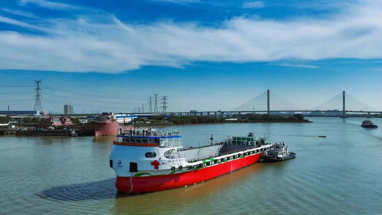 (华南首艘新建纯电动集装箱内河船交付下水)